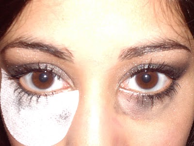 Problem: smudgy, messy, under-eye ugliness caused by eye shadow fall-out.