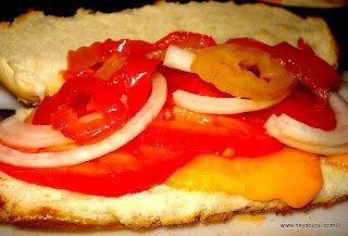 Hot Dog Bun + vegan patty + mmm Tomato + cheese + pickled hot peppers, and of course ranch and ketchup!