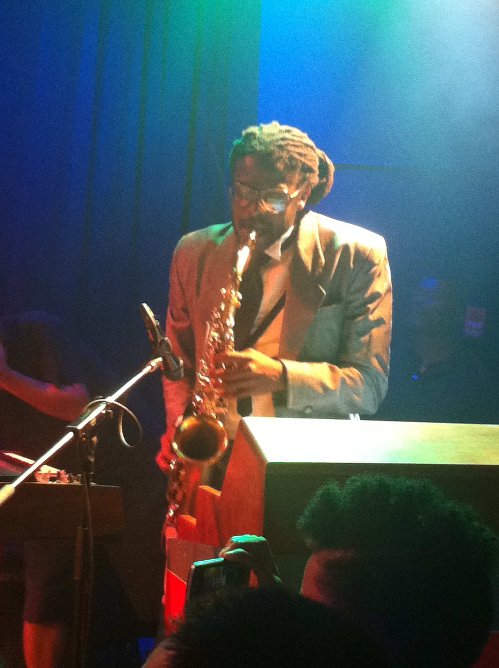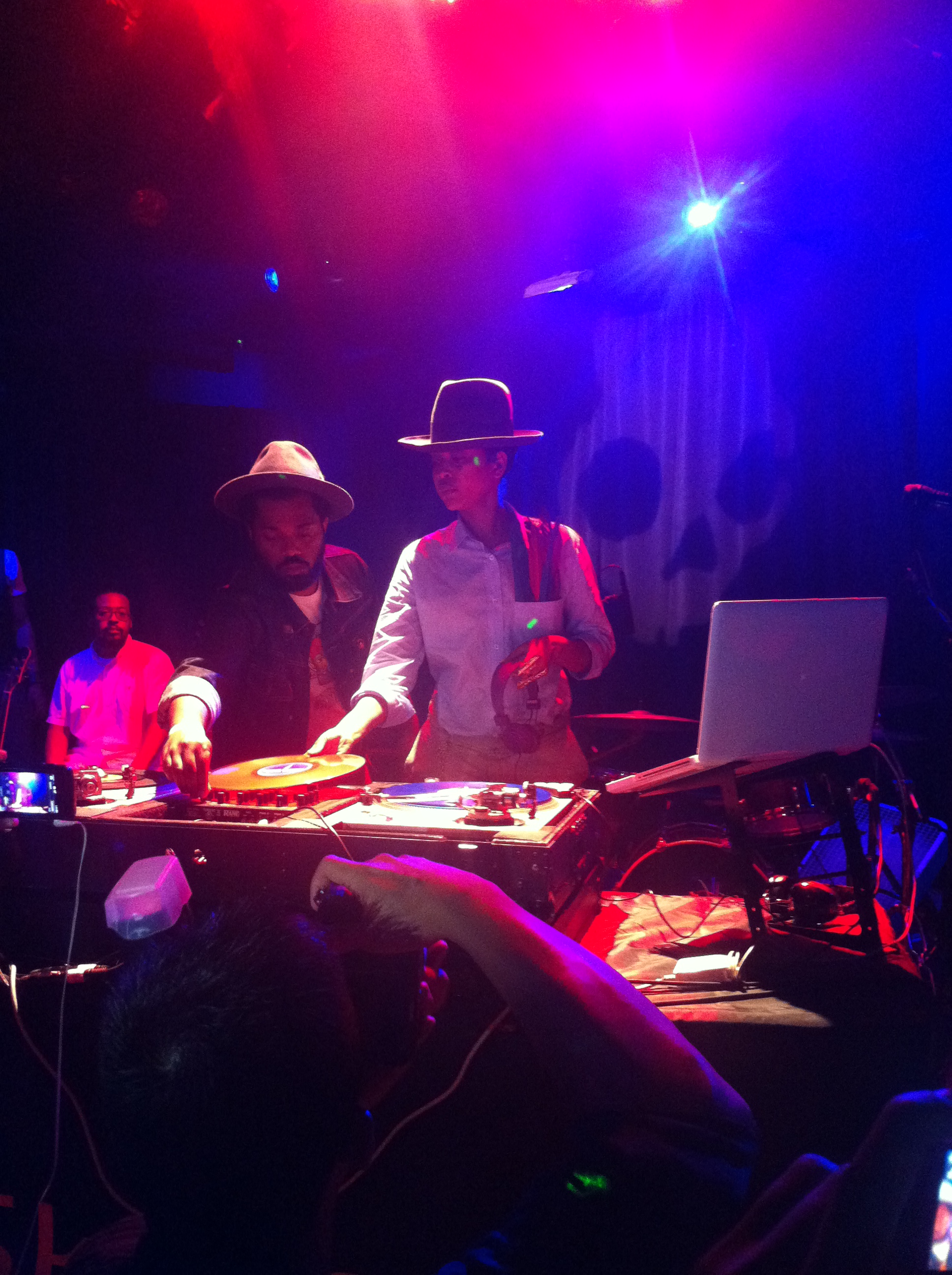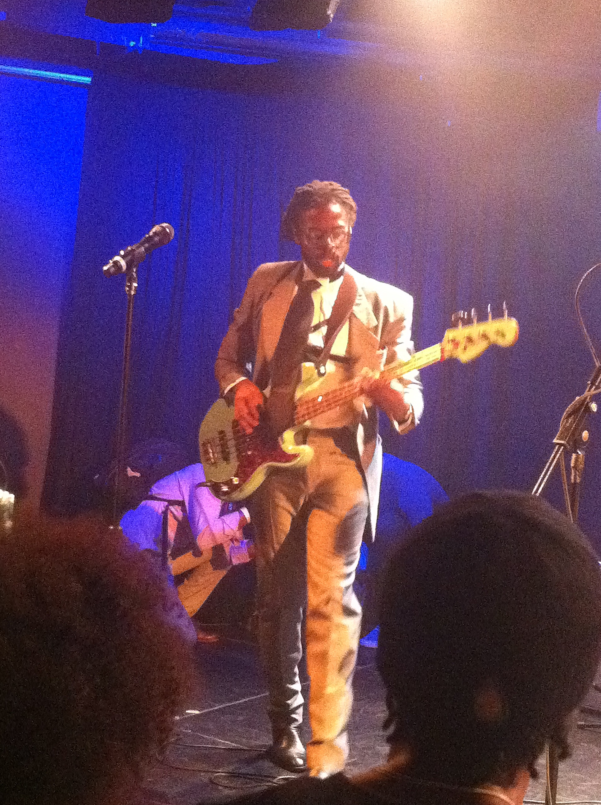Last night Yvonne and I attended the Wax Poetics Records Showcase presented by Skullcandy, a monthly showcase teaming renowned DJs and Wax Poetics recording artists. Last night’s show, held at Le Poisson Rouge, featured one of my favorite artists of all times, Erykah Badu aka DJ Lo Down Loretta Brown, and Adrian Younge and his new band, Venice Dawn. Clearly Erykah and Adrian have tons of fans in NYC because at 10:30pm, 30 minutes before the doors opened, the line was 3 people wide all the way around the block–wow!