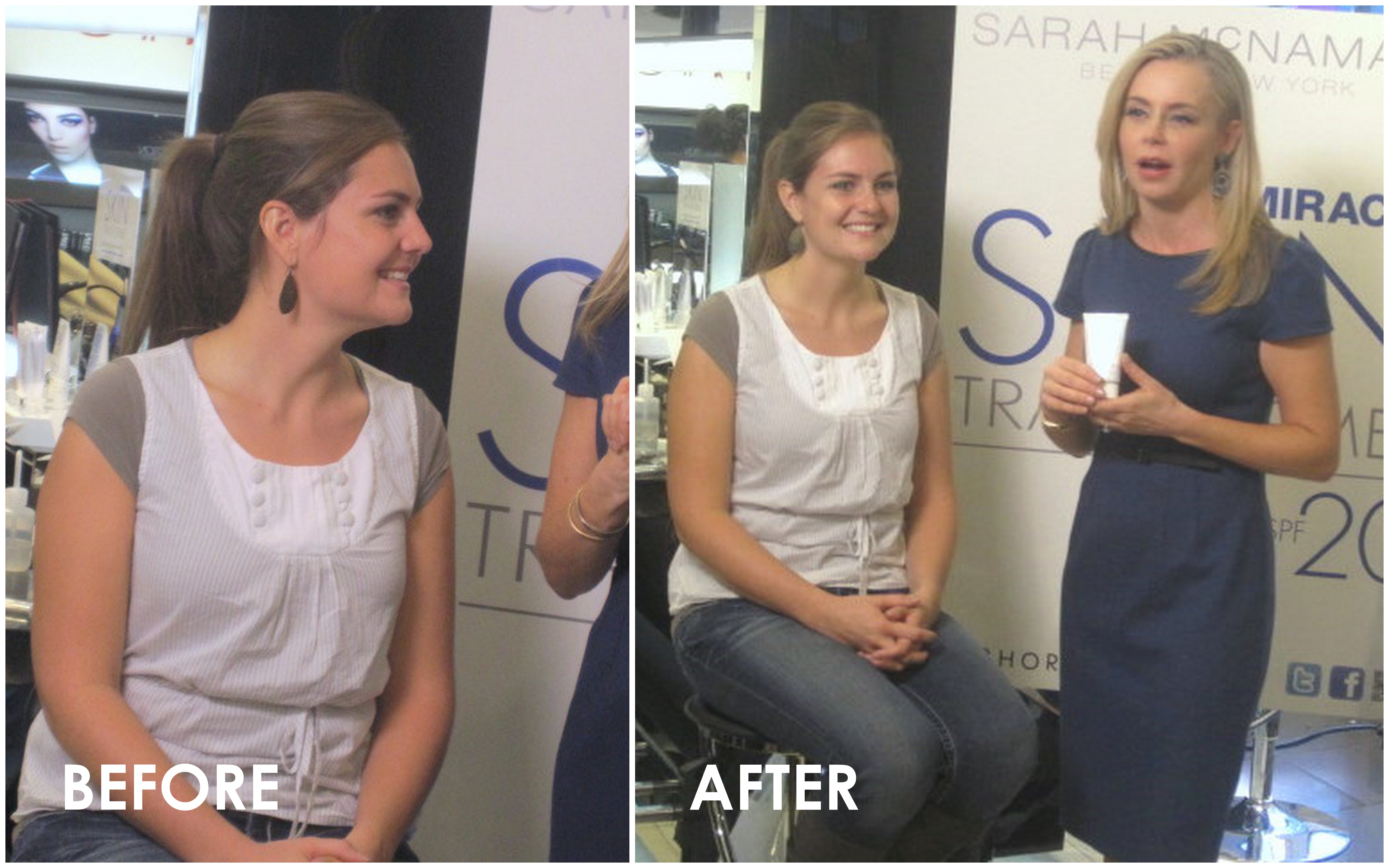 Lucky volunteers from the crowd took a seat and let Sarah McNamara give them a quick, skin-transforming makeover using the Miracle Skin Transformer SPF 20. The women all had your typical freshly-washed-face issues, including redness and uneven skin pigmentation. With a few strokes, McNamara applied the product, leaving these ladies with a fresh, smooth, even skin tone.