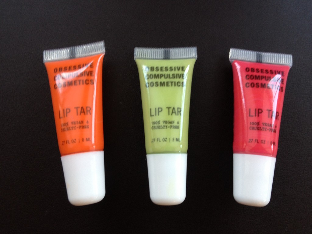 OBSESSED WITH COSMETICS? So are they! Obsessive Compulsive Cosmetics is 100% cruelty free, vegan makeup, rich in pigment and quality. I tried their “Lip Tar” Lipstick Gloss and fell in love! Available in about 30 shades, these ultra-saturated lip colors contain an unprecedented amount of pigment, so a little goes a very, very long way! They glide on smooth like lipgloss but dry like lipstick. I have three shades, pink “Queen”, orange “Beta”, and green “Lo-Fi”.