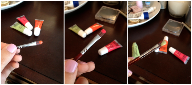 All it takes is a dab of color on a lipstick brush! These colors are great for mixing and blending, to create a personalized pigment perfect for you! I used the greenish Lip Tar as a “creamer”. When mixed with the pink and orange, it pales the color for a nude, creamy look. The best thing about this product is its long-wear formula. The satin finish it creates lasts all day long!