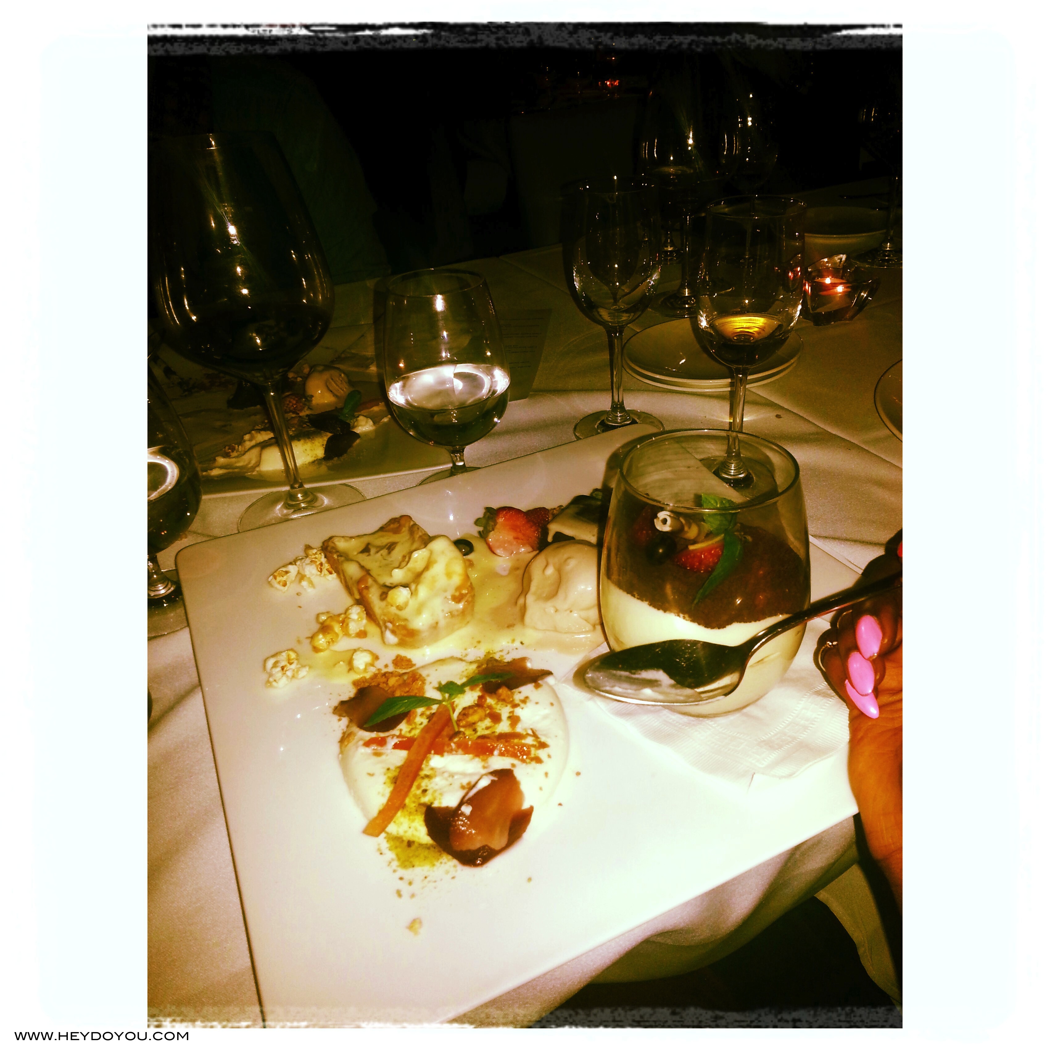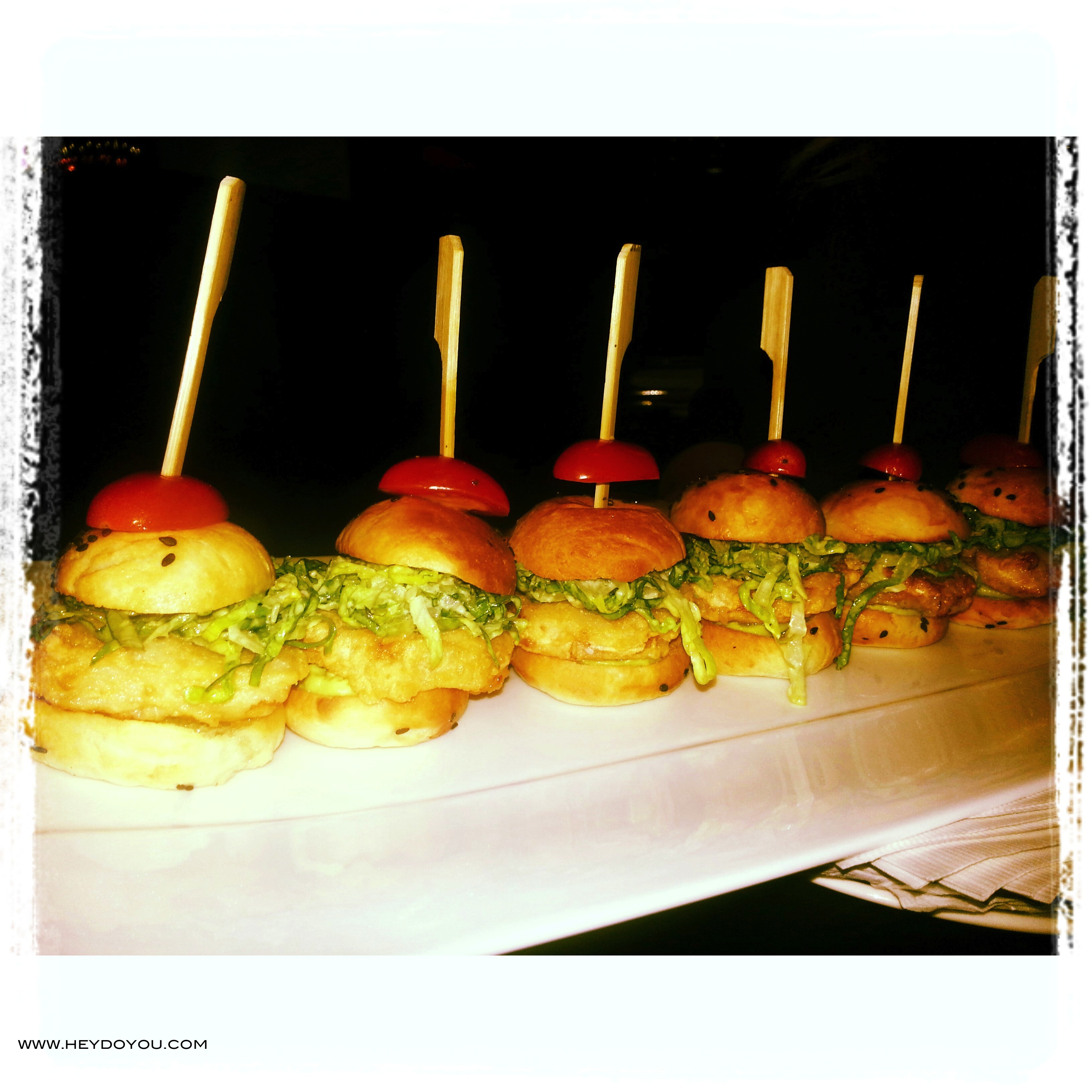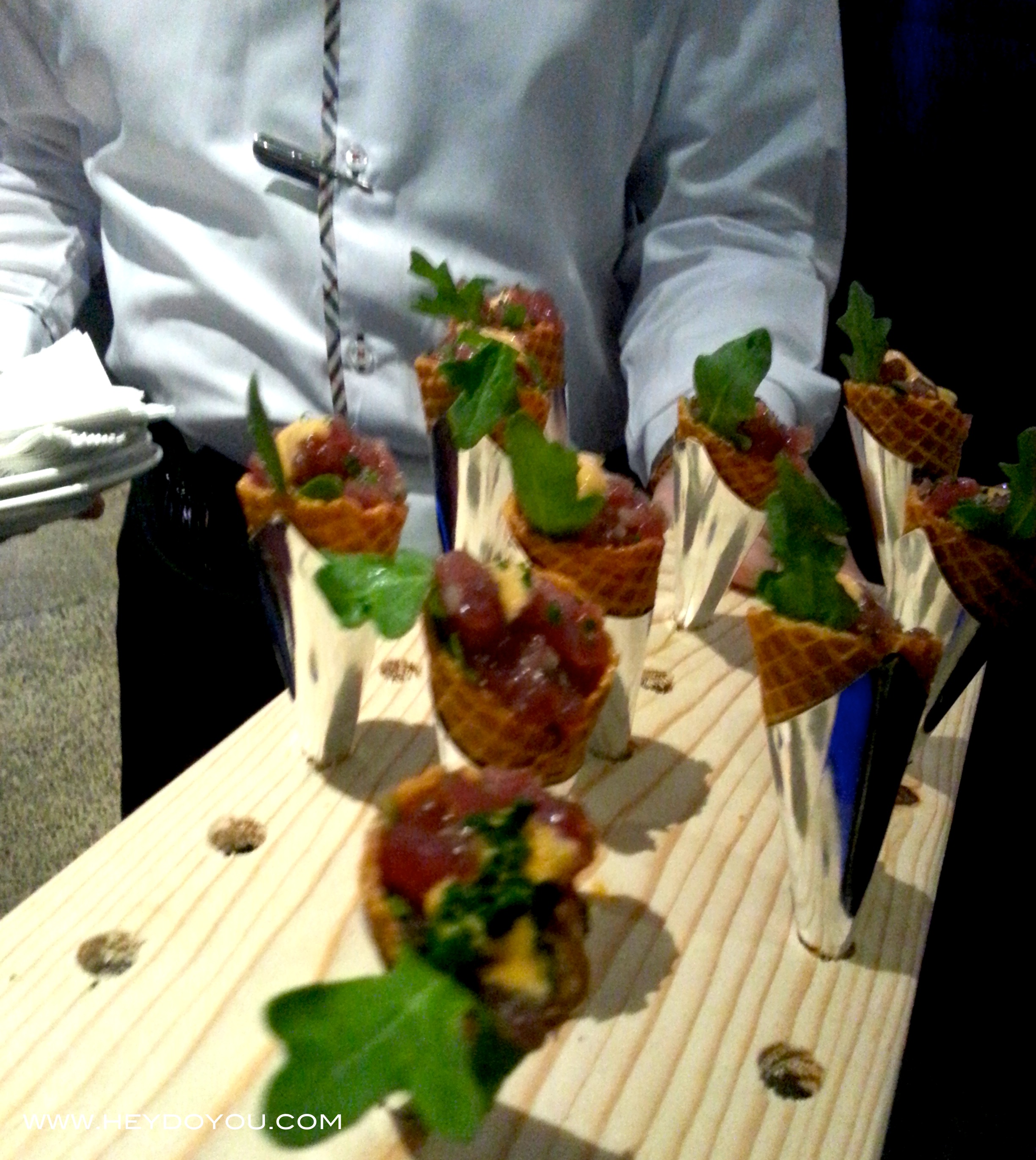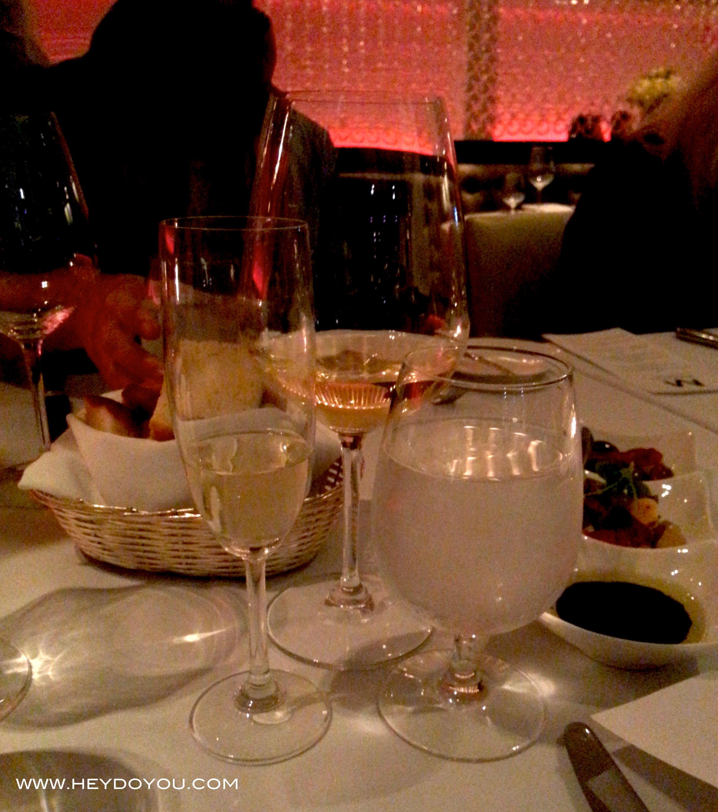 We were greeted with a tall, crisp glass of champagne and then led to the bar area where we were showered (yes that’s what it felt like)… we were showered with all kinds of delicious appetizers and of course more champagne. We hadn’t even sat down at the table and I was already getting full, but I wore a loose dress just so I could taste and savour everything that they had to offer! So now, enough talking. Sit back, relax (don’t forget your bib, if you haven’t started drooling already 🙂 ) and enjoy!