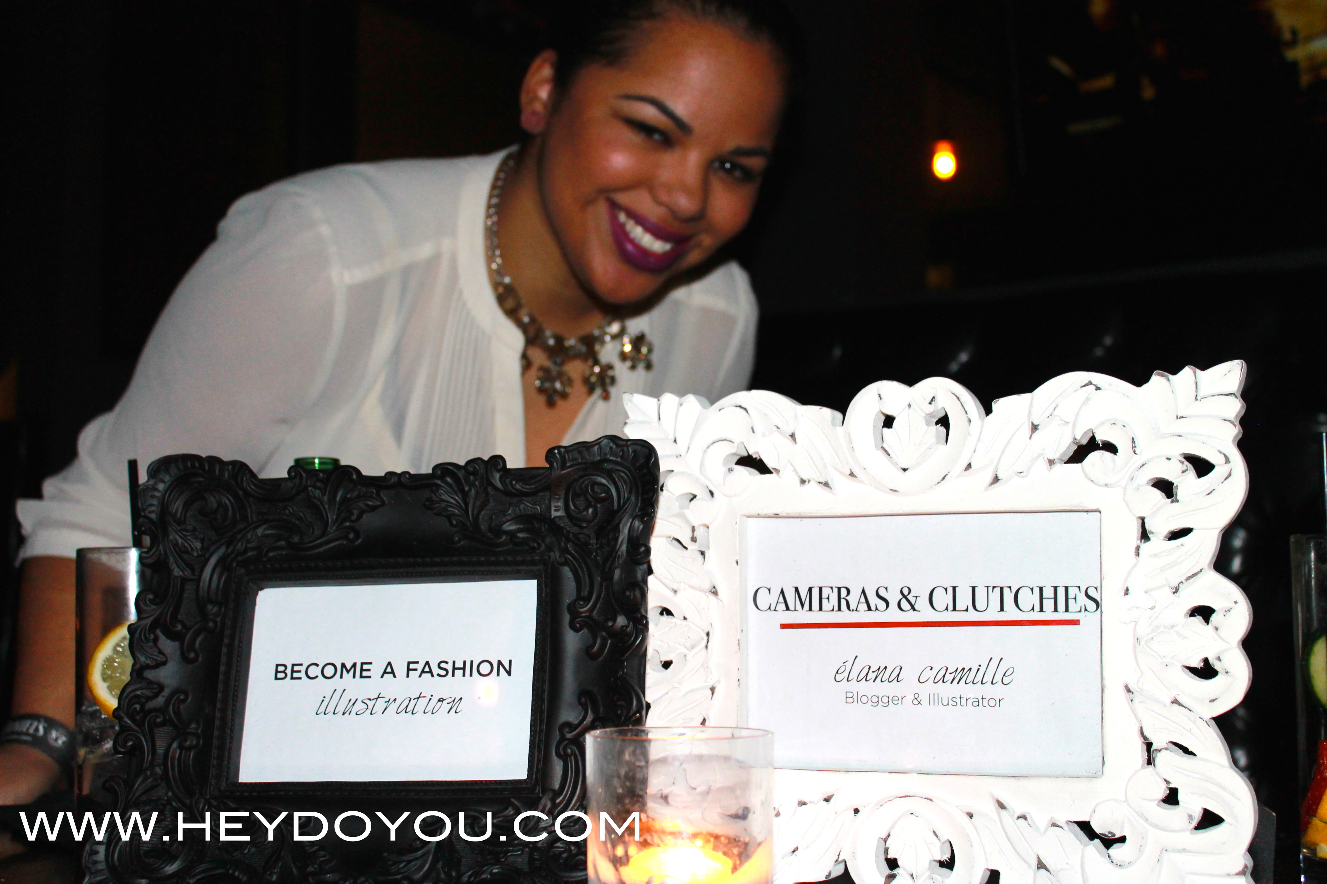 One of my besties recently discovered another talent of hers and was invited to the Eluxe Media Group Spring Soiree to showcase her gifts, and I was right there to show support and see her in action! While we all mixed and mingled, sipped on DELICIOUS cocktails and snacked on TASTY hors d’oeuvres; Elana was hard at work taking pictures and doing fashion illustrations of all the fabulous ladies that were in attendance.