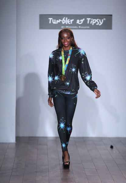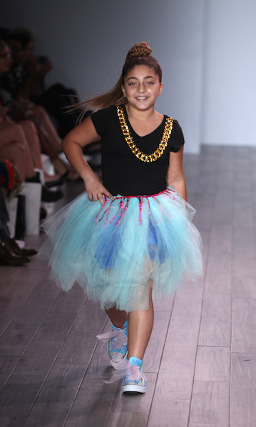 After the lights went down, the first model to hit the runway to the audience’s delight was Real Housewives of New Jersey star Teresa Giudice’s 10-year-old daughter and star in her own right, Milania Giudice. Additional runway models included Olympic Gold Medalist Dalilah Muhammad, Olympic Silver Medalist Nia Ali, and Asaf Green from “So You Think You Can Dance” who danced and backflipped down the runway. Closing out the show was celebrity reality star and model Somaya Reece and cast member of E!’s new reality series Famously Single.