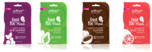 Alba Fast Fix Sheet Masks (SRP: $3.49, Target, Wal-Mart, Whole Foods & natural food stores) Individually wrapped, serum-soaked fiber masks contour to your face to deliver concentrated doses of active botanical ingredients. In as little as 5 minutes, skin experiences a powerful beauty-enhancing treatment! 100% vegetarian ingredients, no animal testing, synthetic fragrances, artificial colors or parabens.