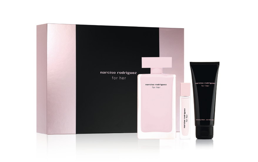 Celebrate the holiday with Narciso Rodriguez fragrances. The ‘for her’ Eau de Parfum gift set features a3.3 oz. Eau de Parfum Spray, a 2.5 oz. Body Lotion, and a 10 ml Purse Spray.