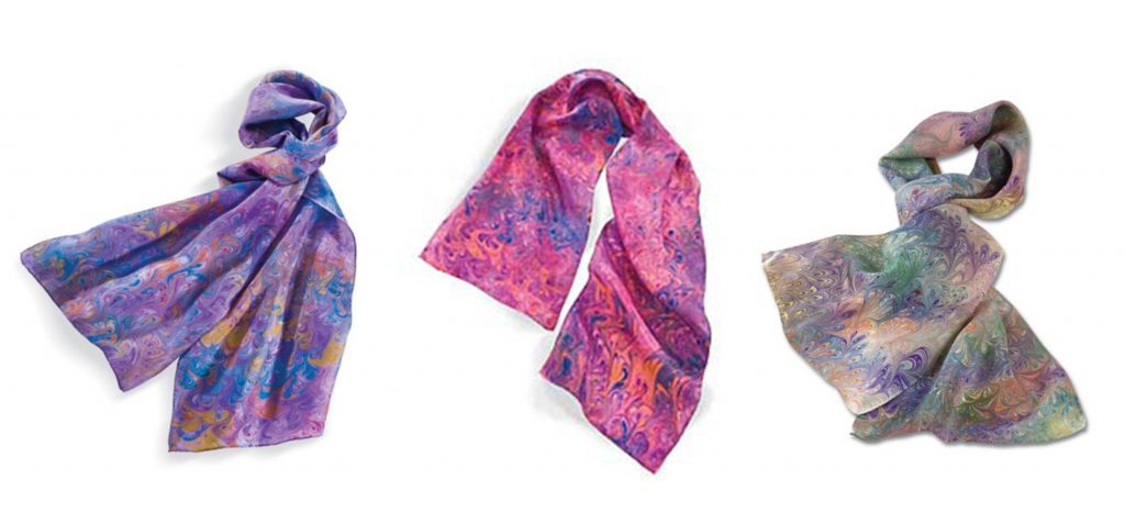 - Hand marbled silk scarves