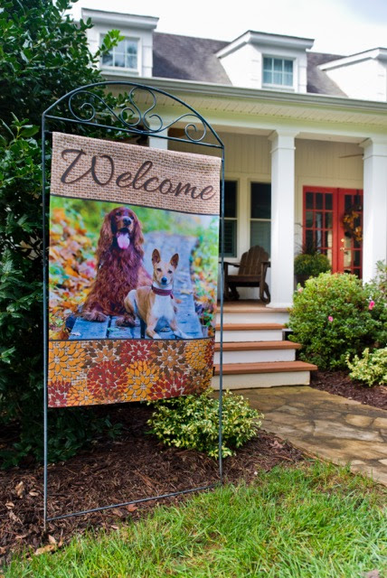 Custom photo flags- Upload a photo of your furry friend or hero, add a personalized message and accents such as a frame or border.