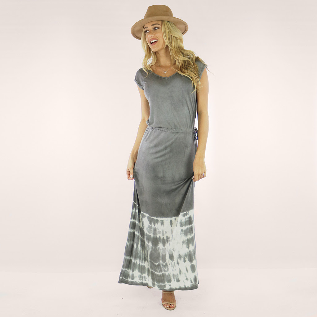 - Blouson Maxi Dress ($70): Sit back and relax with the Maxi Dress! Made with soft jersey knit, this flattering favorite shapes a relaxed, triangle bodice with short sleeves to show off your skin. With a gathered, elastic waist and adjustable string, you’ll stay comfortable and stylish in the tie-dye accent at the bottom.