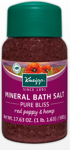For a sense of well-being – try Kneipp’s Red Poppy & Hemp Mineral Bath Salt – “Pure Bliss” ($20)
