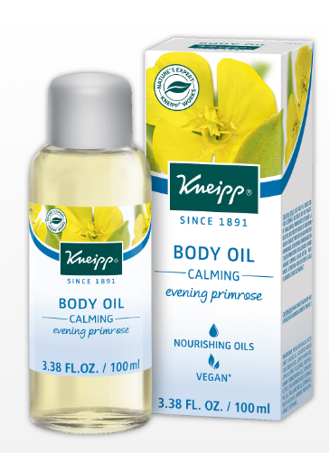 The intensively lipid-replenishing and moisturizing KNEIPP® EVENING PRIMROSE BODY OIL – “CALMING” provides ideal care for very dry skin. It may calm very stressed and irritated skin, can promote its regeneration and protects it from damaging environmental influences. The body oil contains a special combination of high-quality oils which feature a high level of essential fatty acids. Skin-calming evening primrose oil, very well-tolerated almond oil and valuable sunflower oil can provide intensive lipid replenishment.
