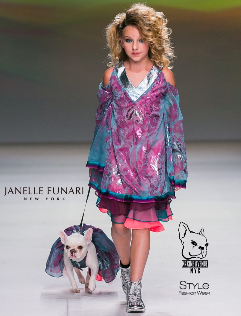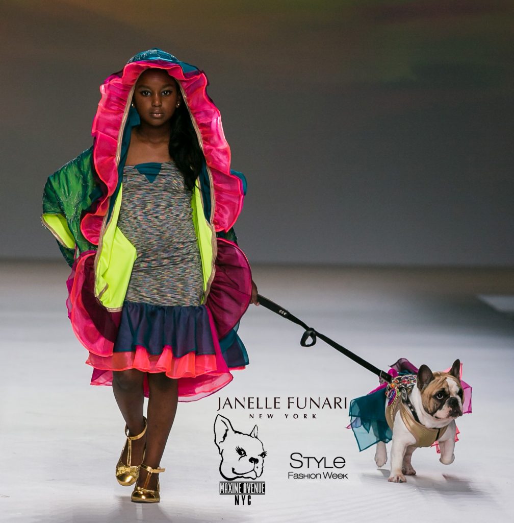 Pups strutted the runway with the Maxine avenue NYC PUP collection by Funari worn as Mini me jackets and dresses worn with models! The website is www.maxineavenuenyc.com