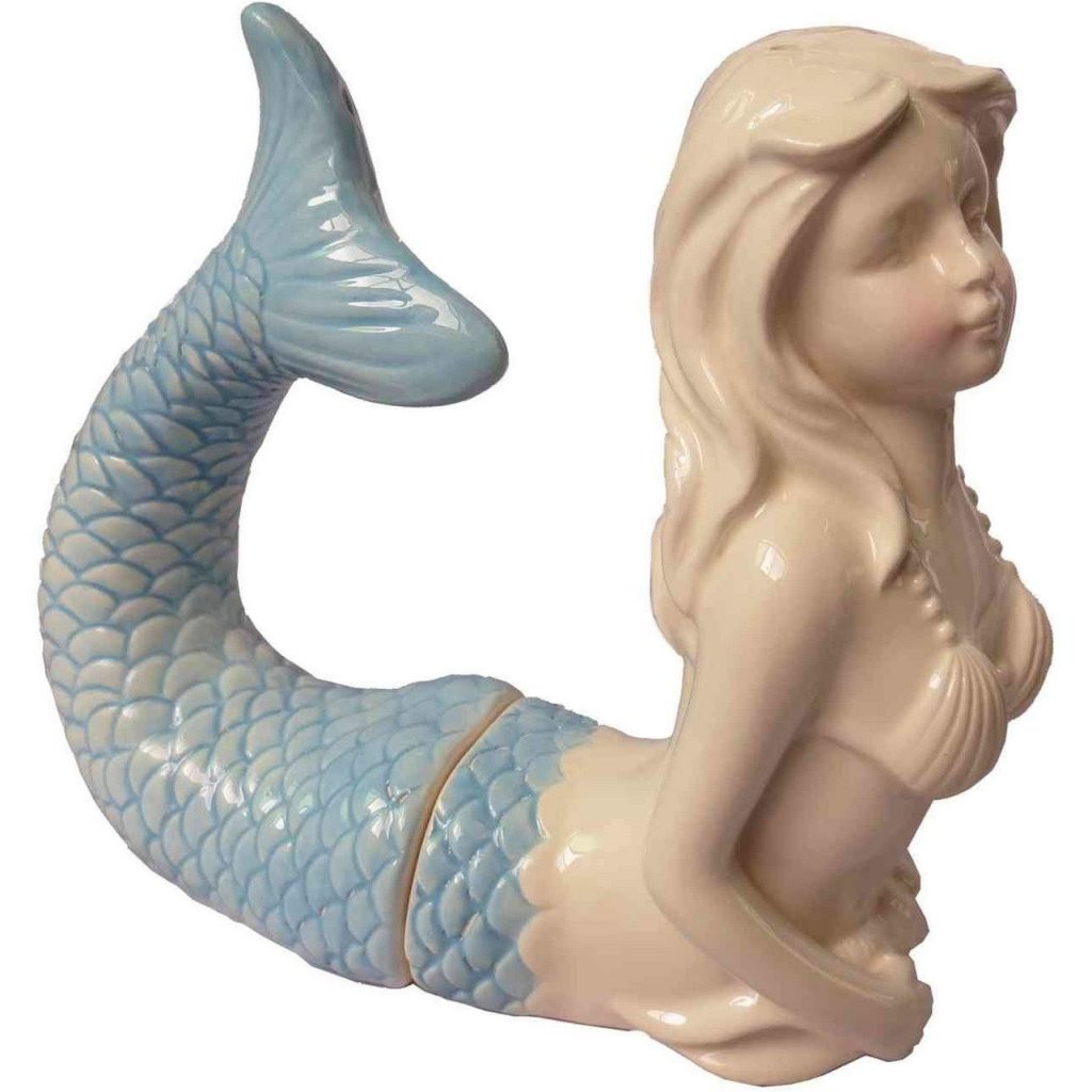 Mermaid Salt & Pepper Shakers – Cute little blue and white porcelain mermaid spices up your kitchen with a fun twist on a must-have item. (photo at top)