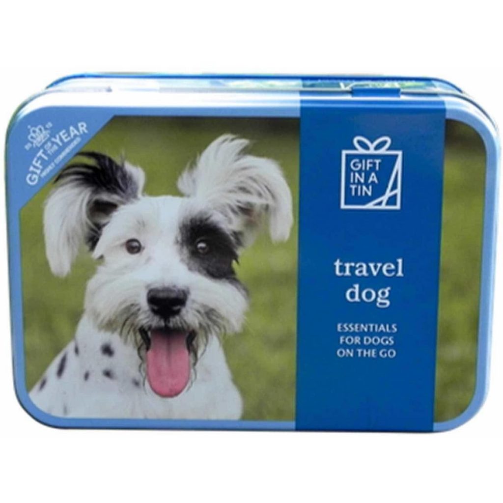 Travel Dog in a Tin – Everything you need for on-the-go dog owners: poop bags, collapsible water bowl, universal leash, glow in the dark dog tag. Your best furry friend is set!
