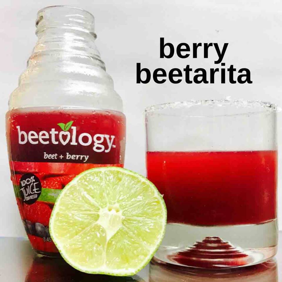 Fill a cocktail shaker halfway with ice. Add Beetology, lime juice and tequila. Shake vigorously for about 20 seconds, and serve in a glass with or without salt.