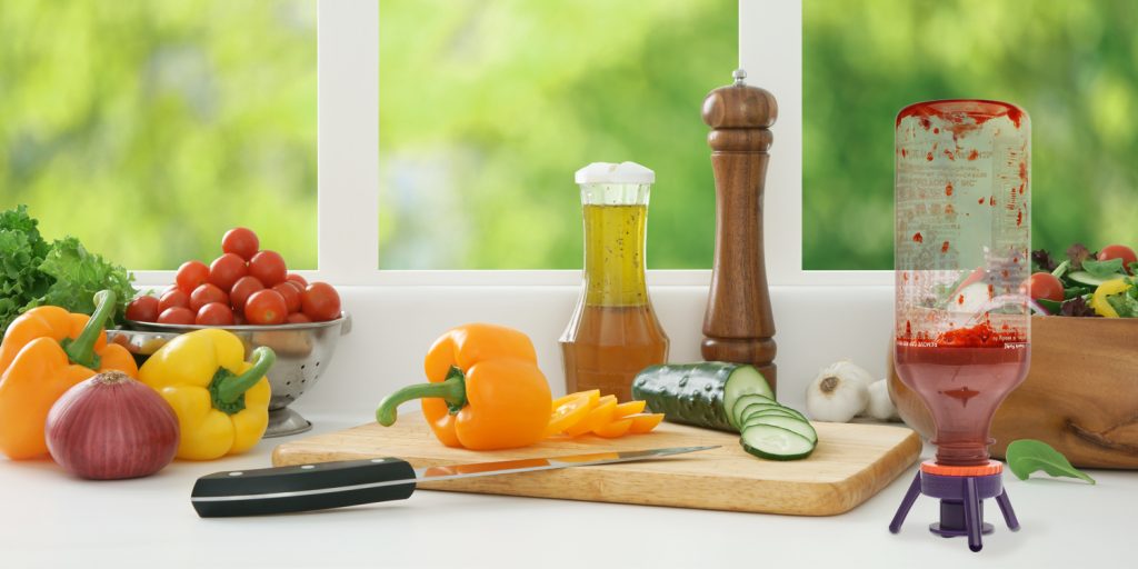 According to Consumer Reports, up to 25% of beauty products and 15% of kitchen condiments go to waste because the last amounts are too hard to squeeze, shake or scrape out.