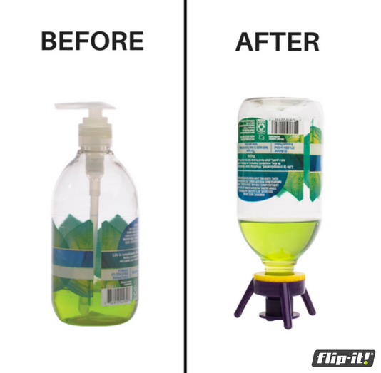 From the kitchen to the bathroom, it takes shaking, pounding and leaning bottles to get down to that last drop. The struggle is real! 🙂 Flip-it! is the solution to save time and money by getting every drop of the products you’ve already paid for! Plus, it makes bottles perfectly recyclable once the product is fully empty!