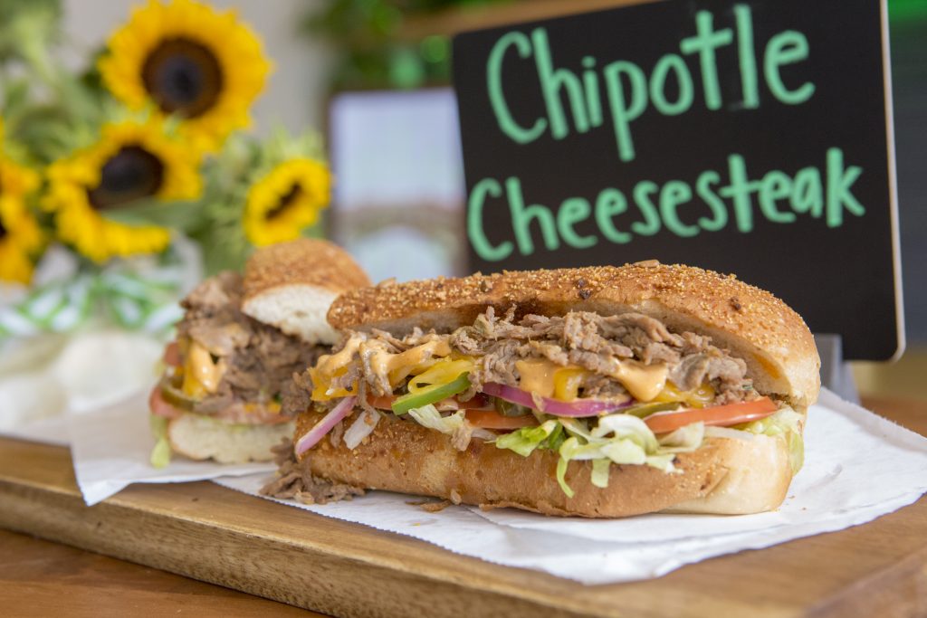 - NEW! Chipotle Cheesesteak made with steak, shredded Monterey cheddar cheese, crisp lettuce, sliced tomatoes, green peppers, red onion and jalapeños and dressed with a smoky Chipotle Southwest sauce all on top of freshly baked Sunflower Crunch bread, which is available for a limited time only.