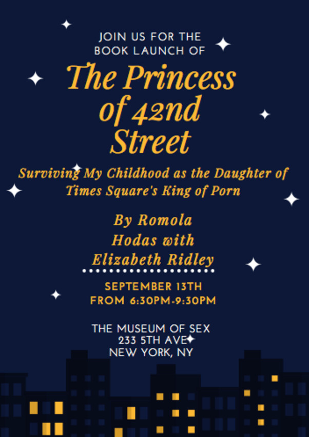 It was a great night at the Museum of Sex on September 13th to celebrate the launch of the memoir The Princess of 42nd Street: Surviving My Childhood as the Daughter of Time Square’s King of Porn by Romola Hodas with Elizabeth Ridley.