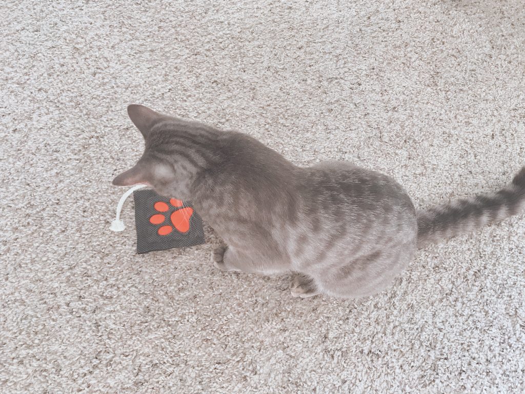 For extra safety the strings are stitched in forming a loop inside the fabric, this ensures that they won’t come lose even if a stronger cat pulls on them. In addition to the extra fun for your cat the colour of the strings also provides an easy way to help you identify if the toy is filled with 4catsnip or valerian.