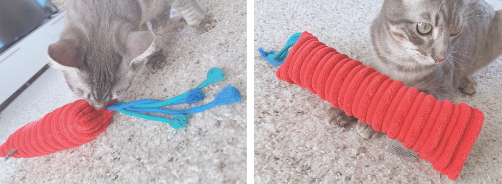 The improved versions of the Rustling cushions, motive cushions and Cat Wrestlers all feature extra sturdy strings with tassels to provide your house tiger with extra fun and a natural outlet for their hunting instincts.