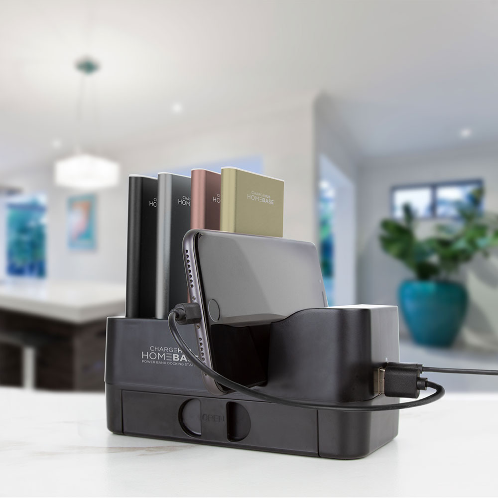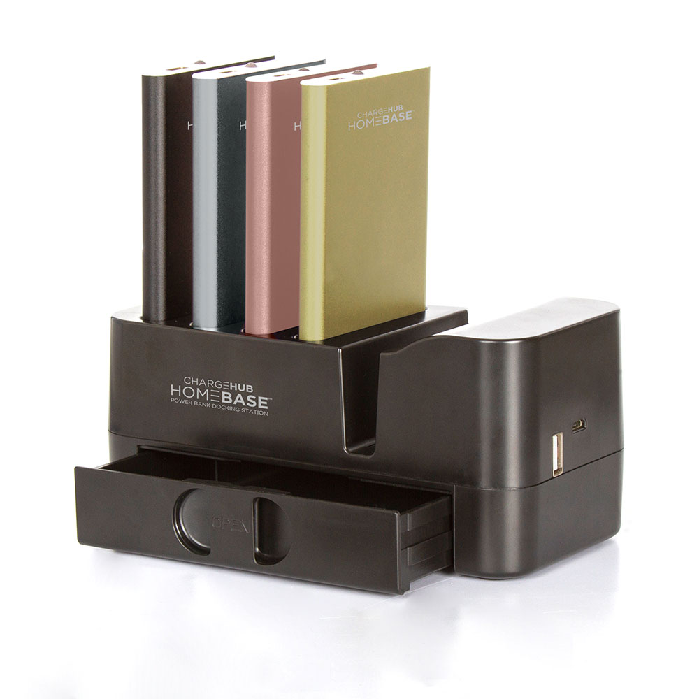 Keeping your devices at the ready has never been simpler with the ChargeHub HomeBase Powerbank dock. The powerbanks provide additional battery power for your mobile devices and are easy to recharge using the dock — simply drop them into the slots and let them refuel.