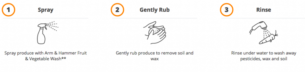 With a few simple steps and the help of Arm & Hammer Fruit & Vegetable Wash you can help your family live a healthier lifestyle. Just spray, rub, rinse and enjoy cleaner produce.