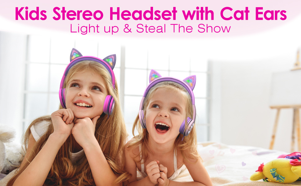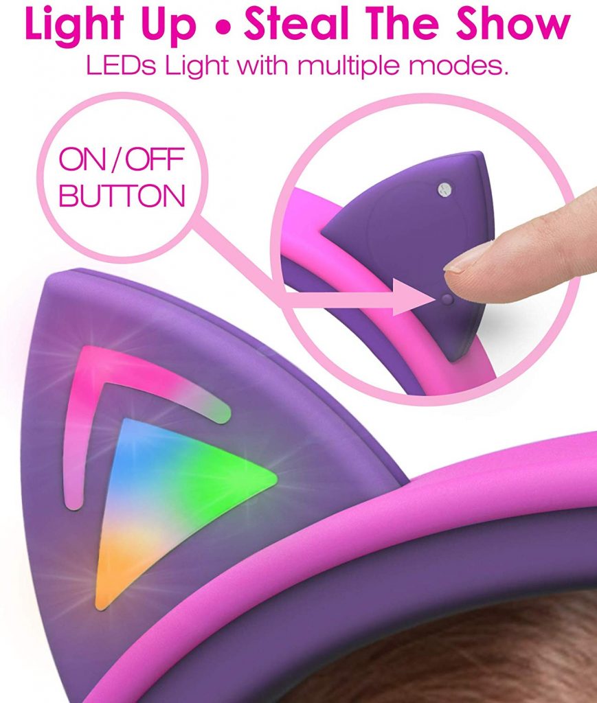 FosPower Kids Stereo Headset with Light Up Cat Ears Features: