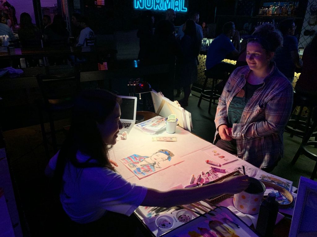 Lulu hosts the live portrait sketching event at The Rabbit Hole Normal Height