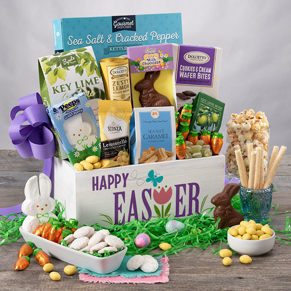 Sure, we love Easter for its promise of incoming warm weather and fragrant new blooms, but most importantly, for the guarantee of these traditional sweets! With exquisite delights, like a gooey marshmallow Peep, lemoncello chocolate almonds, and delicately crispy cookies, this beautiful Easter themed gift crate is sure to make Easter morning one they’ll never forget.