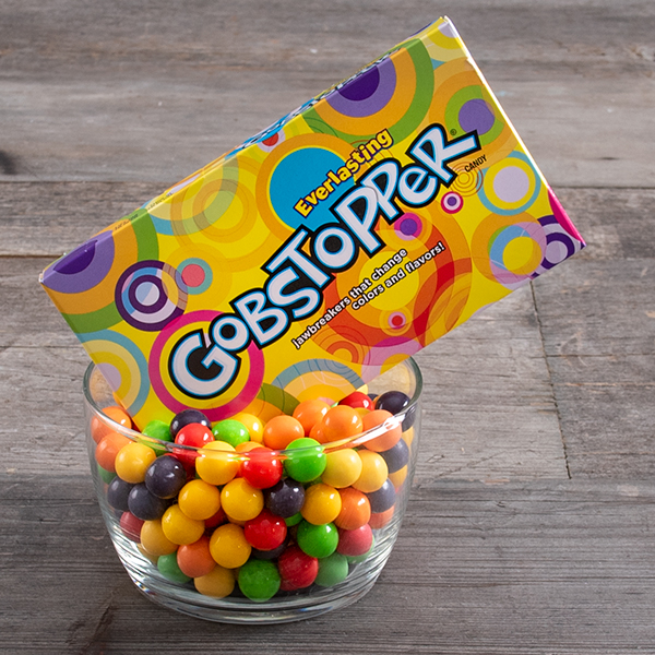 - Everlasting Gobstopper Theater Box by Ferrara Candy Company – 5oz. – Jawbreakers that change colors and flavors as you suck on them.