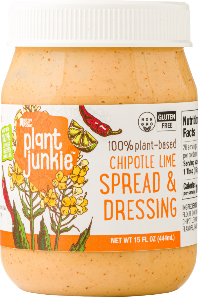 Plant Junkie’s range of salad dressings feature ranch dressings made with avocado oil and vinaigrettes made with expeller-pressed canola oil. For those hungry for healthy flavors in their sandwiches, wraps and dips, spread selections include regular and chipotle lime flavors made with each type of oil.