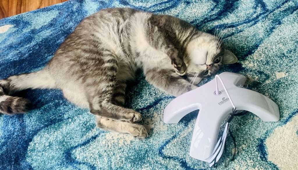 • Chase Me! Like Crazy Ribbons, the Chase Me! is an interactive toy designed to help indoor cats stay engaged. It features a motorized wand with ribbons that move and change directions, attracting cats’ attention and encouraging them to play. The Chase Me! has four speed settings — slow, medium, fast and random — to keep cats entertained for hours.