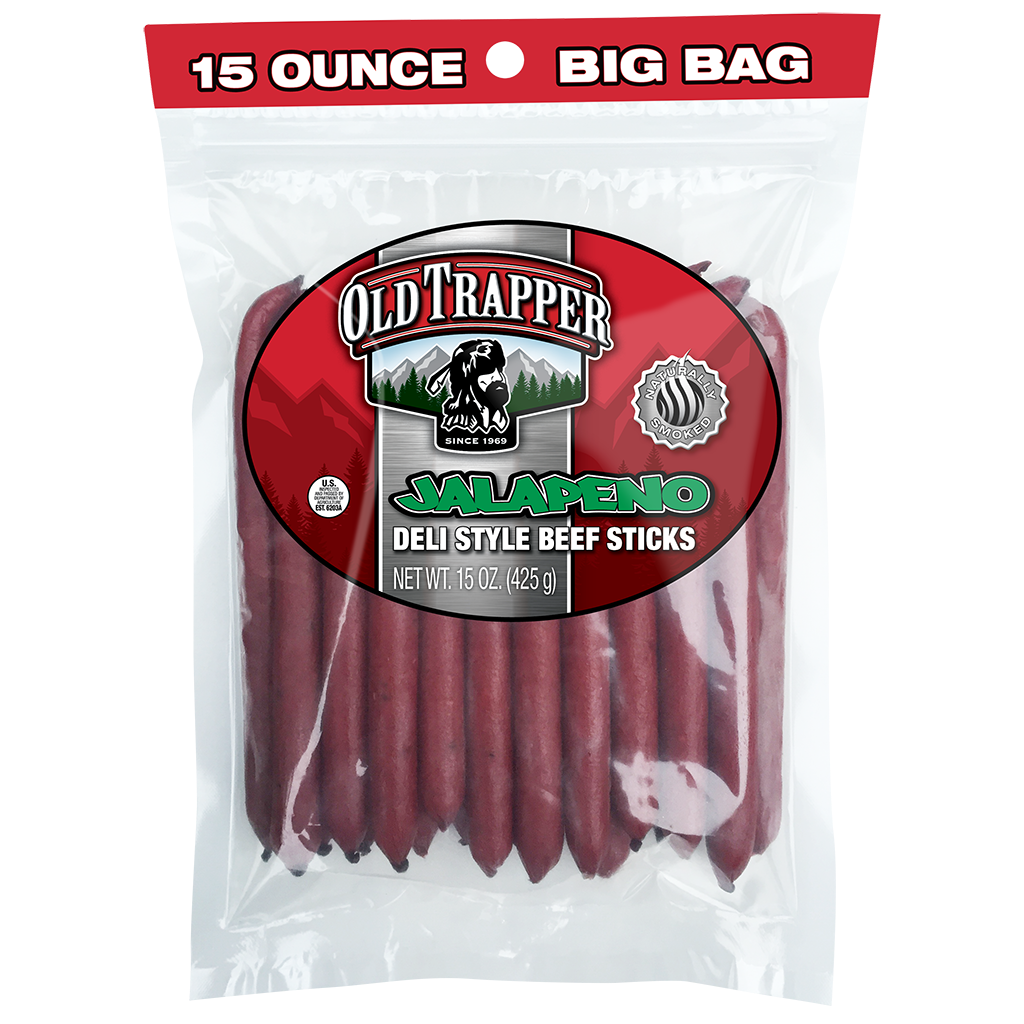 “The popularity of our Original flavor 15-ounce bags told us that our customers are looking for large quantities of quality beef sticks for a good price,” explains Robert Leary, Old Trapper’s Director of Marketing. “Our latest Jalapeno and Teriyaki versions of the shareable bags deliver more of what our market base is craving – we know this because of how fast they sell out at retailers. And because we are so proud of the appealing mahogany color, all our 15-ounce Deli-Style Beef Sticks are clear bagged so consumers can see the exact quantity and quality they are receiving.”
