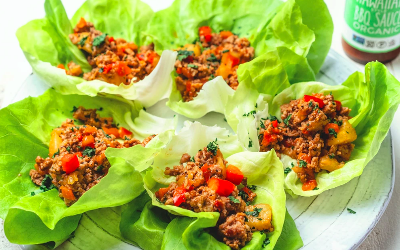 The quick, five-ingredient (seasoning and cilantro aside) Whole30 and paleo lettuce cups recipe is the perfect weeknight dinner recipe when you’re short one time, bothered from your commute, and starving. Simply chop a bell pepper, brown ground pork, stir together a few other ingredients, and dinner’s done. Primal Kitchen Hawaiian-Style BBQ Sauce accents the unctuous ground pork and sweetness of the red bell pepper and pineapple with smoky, savory, Island-kissed flavor. Scoop straight from the skillet, or pile atop of lettuce leaves, and devour.
