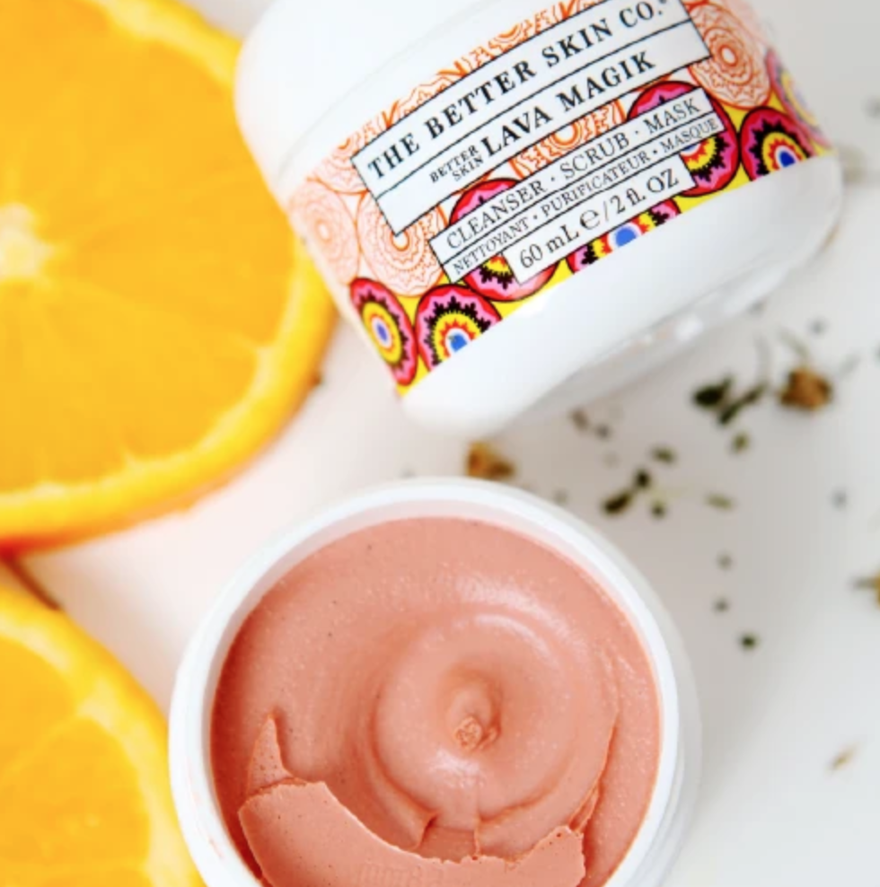 Triple Threat. A daily cleanser, exfoliating scrub and revitalizing mask. Skin cleansing volcanic lava from France enriched with nourishing calendula, sweet orange and grapeseed oils, cucumber, parsley, and chamomile for healthy radiant, more youthful looking skin.