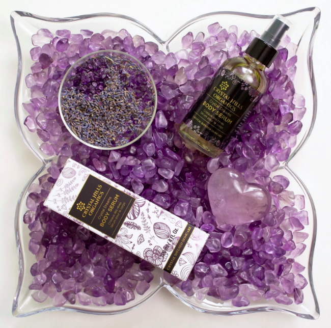 Exquisite flowers, beneficial herbs, and high-vibration crystals are synergistically blended to create the Crystal Hills product line. They are the original crystal-infused apothecary. Their goal is simple: to use the healing power of nature to cleanse, soothe, protect, and beautify your skin.