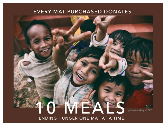 - Every mat sold = 10 meals donated to those in need