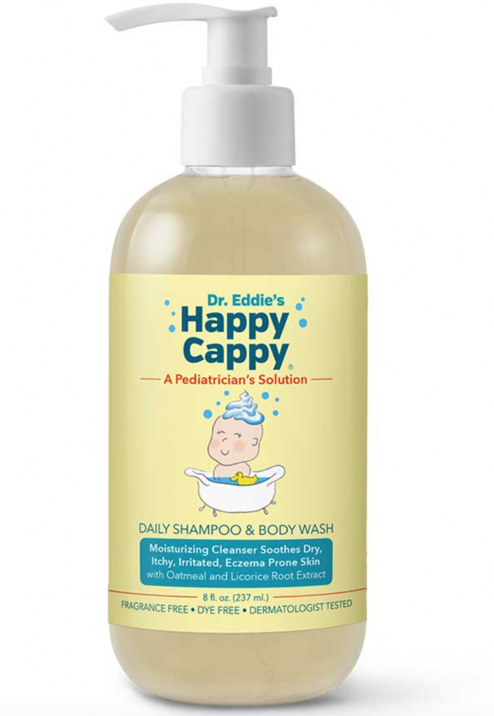 Happy Cappy’s Daily Shampoo and Body Wash is a pediatrician developed daily shampoo for soothing dry, sensitive, eczema-prone skin. This moisturizing cleanser is dermatologist and clinically tested and is free of skin irritants like fragrance, dye, alcohol, sulfates, phthalates, and preservatives known as parabens.
