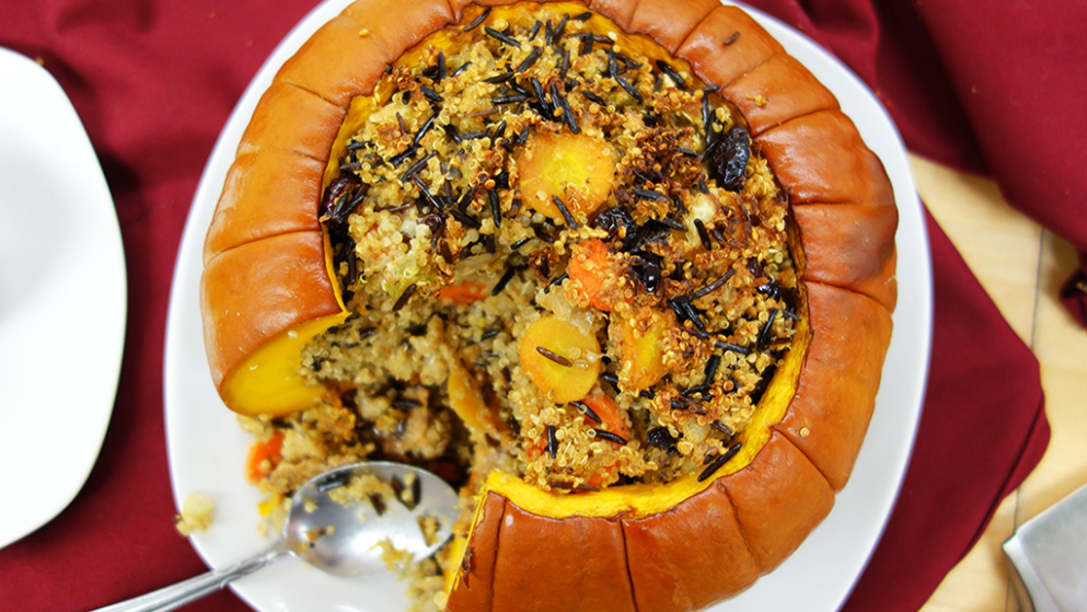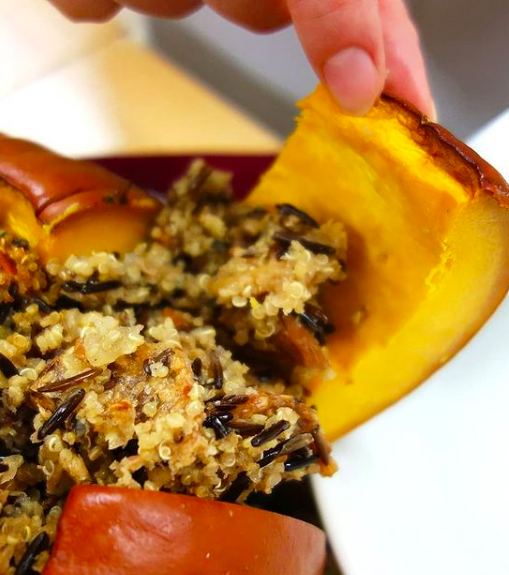 - Load the roasted pumpkin with the filling and roast for 30 minutes at 350 degrees.