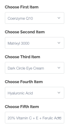 The Timeless DIY Beauty Box allows you to choose which five items you want inside. Use the drop-down selectors down below to personalize the Beauty Box for yourself or as a gift.