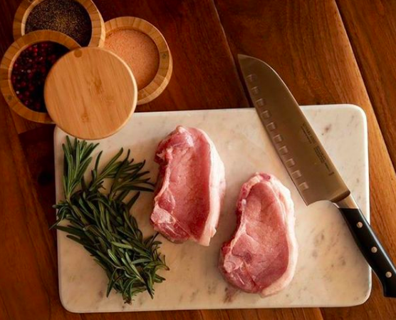Circle B Ranch Delicious Pork Chops start with Humanely raised and handled hogs. Roasted, sautéed, or grilled, the Loin pork chop works well for any culinary palette. Circle B Ranch Natural Pork Chops pair well with so many flavors so no two meals will be exactly the same. Especially when we have them marinated in olive oil with garlic and fresh rosemary and grilled.