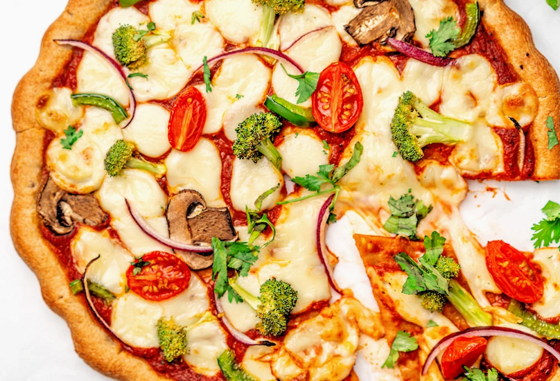 Made with a frozen almond flour pizza crust, easy veggie pizza comes together in about 25 minutes. Below is Primal Kitchen‘s veggie pizza recipe only needs simple ingredients and takes very short time.