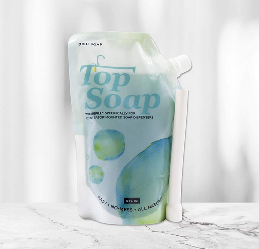- Each Top Soap pouch is pre-measured to perfectly fill your sink-mounted countertop soap dispenser, so it will never overflow.