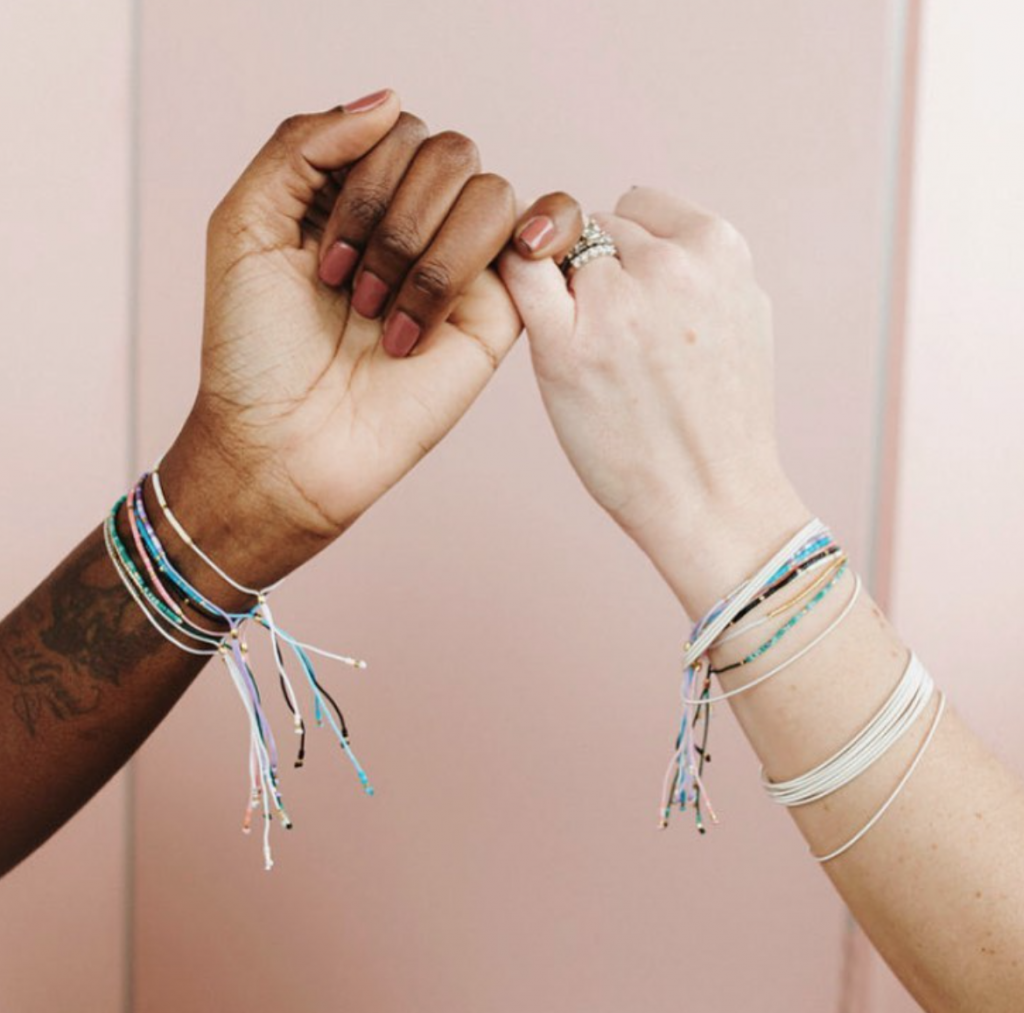 These friendship bracelets come in packs of two bracelets of the SAME color. Take your bracelet and share the second one with a friend. Or keep ’em both!!!