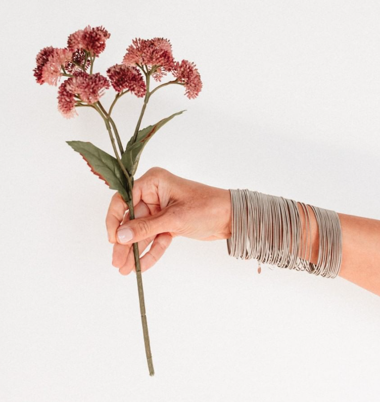 The Metallics Dia Collection is made up of stainless steel and plated stainless steel bracelets. All are available in 7″, 7 ½” & 8 ¼” sizes. Because Dia bracelets are springs, they’ll stretch and rebound to an extent but will lose shape if pulled with force.