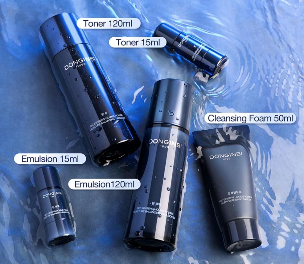 Skin cares are not only about women any more, men should also take care of their skins, for being responsible to one of the most important parts on the body – face! Enhance your men(husband, boyfriend, dad)’s skin care routine with DONGINBI set of red ginseng skin care products, including a Red Ginseng Homme Power Toner 120ml and 15ml, an Emulsion 120ml and 15ml, and a Cleansing Foam 50ml for clean, smooth skin. Use the power of Korean skin care to nourish their skins.