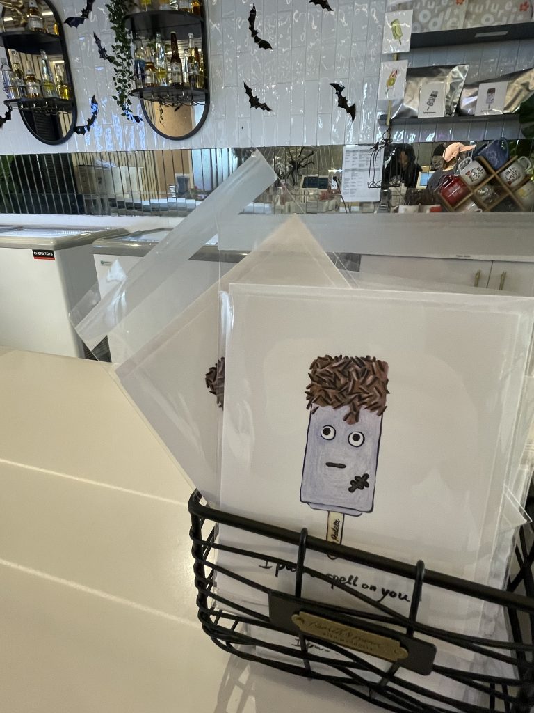 Other than the paleta mural sculpture, you can also find greeting cards with Lulu’s illustrations selling in the store. It is perfect gift for someone who is addicted to this delicious treat.