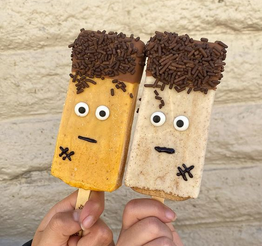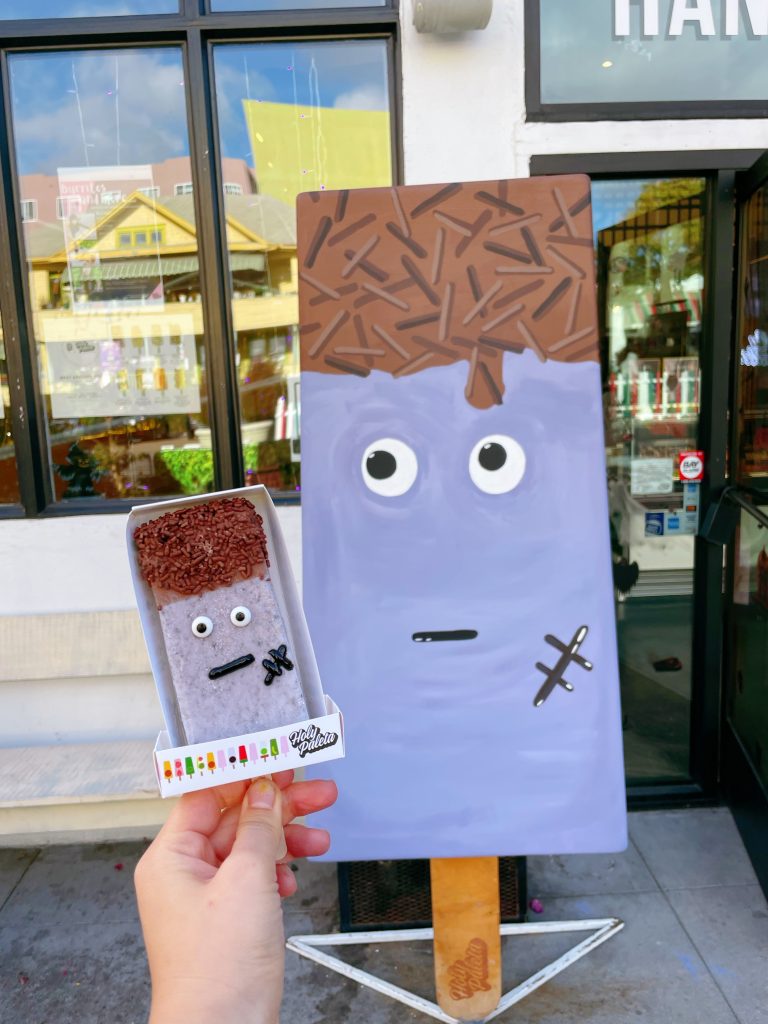 This purple Halloween Paleta’s flavor is Taro Oreo, with chocolate dip and sprinkles. It is amazingly delicious.